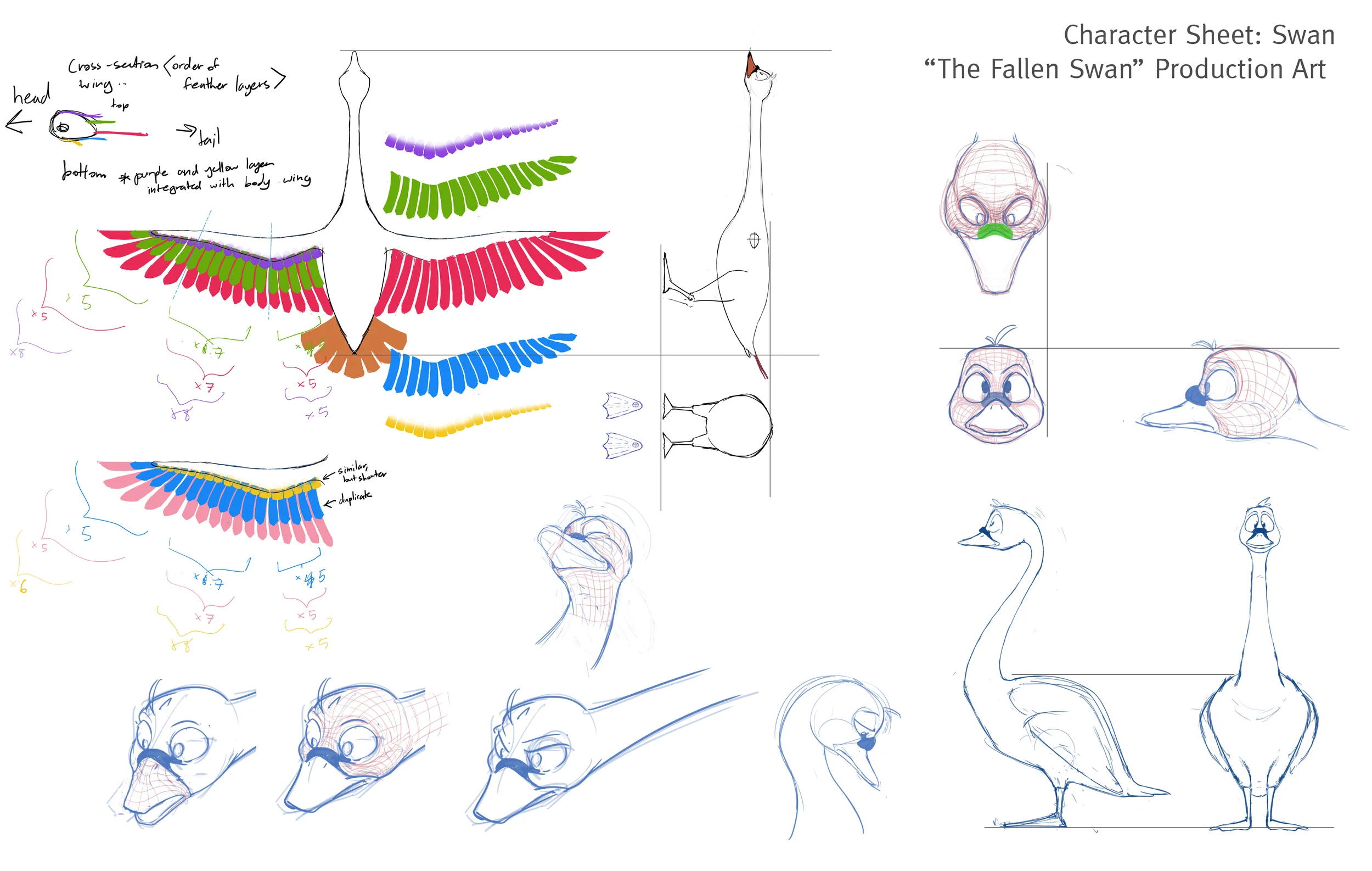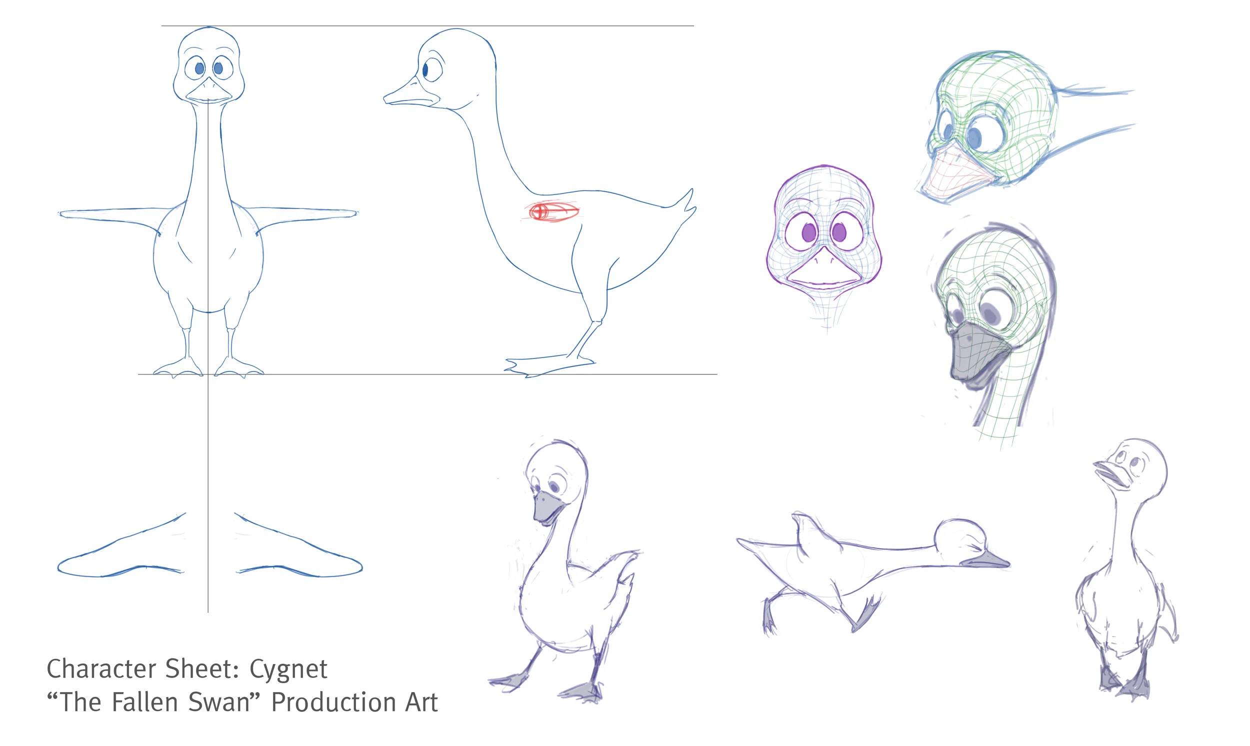 Character sheet and model study for the thesis film, "The Fallen Swan."